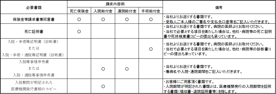 保険金 給付金請求に必要な書類を教えてください 請求する内容によって必要な書類は異なりますか よくある質問 東京海上日動あんしん生命