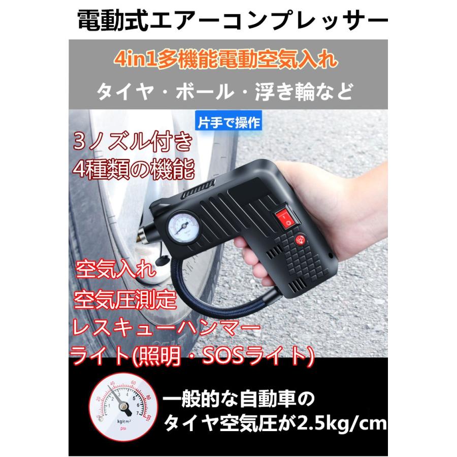 電動空気入れ 空気圧測定 レスキューハンマー ライト 照明 Sos 小型エアーコンプレッサー シガー 自動車 自転車 車 バイク Xy 575 Tiyoustore 通販 Yahoo ショッピング